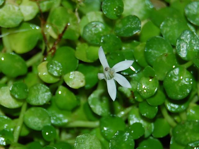 丸葉畑蓆(マルバハタケムシロ)はキキョウ科ミゾカクシ属の多年草である。