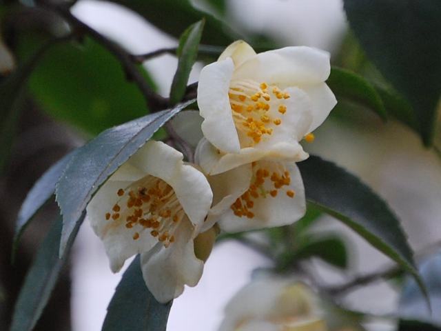 白鳩椿(シラハトツバキ)はツバキ科ツバキ属の常緑低木である。