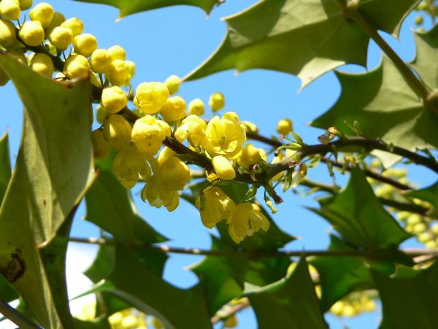 特徴としては、柊南天(ヒイラギナンテン)よりも開花時期が早く、花穂が立って豪華である。
