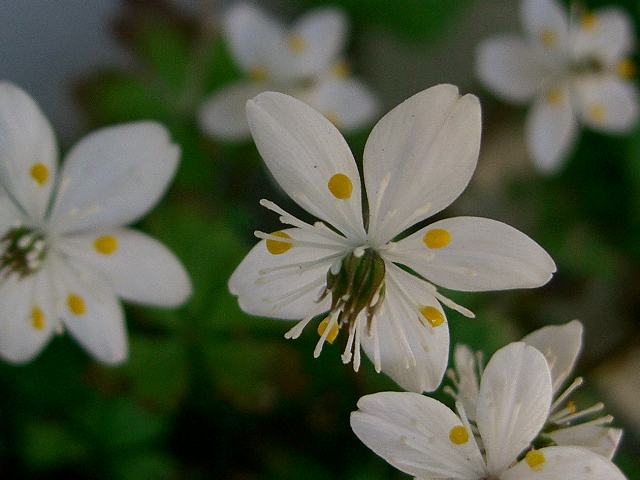 5~10センチの花茎を伸ばし、花径1センチくらいの梅に似た白い五弁花を咲かせる。