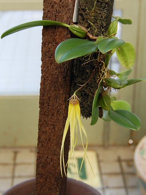 ブルボフィルム・プルマツム・アウレウムはラン科マメヅタラン属(ブルボフィルム属)の常緑多年草である。