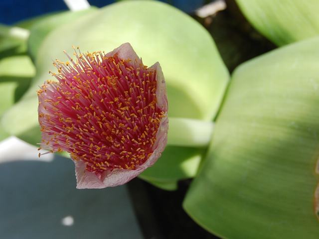 赤花眉刷毛万年青(アカバナマユハケオモト)はヒガンバナ科マユハケオモト属の常緑多年草である。