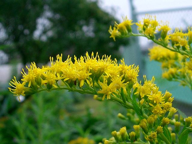 花穂の下から順番に、黄色い花(頭花)をたくさんつける。