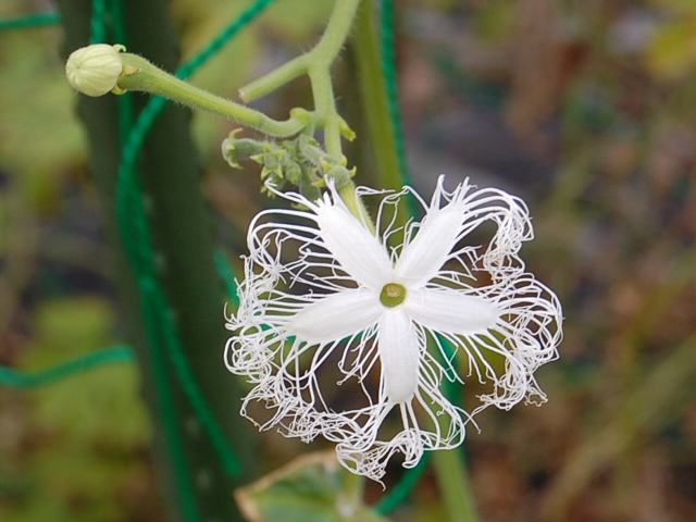 茎は他の植物に絡まって伸び、2メートルくらいになる。