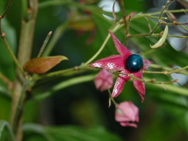 萼片は果実の時期まで残り、星形に開いて紅色に変わる。