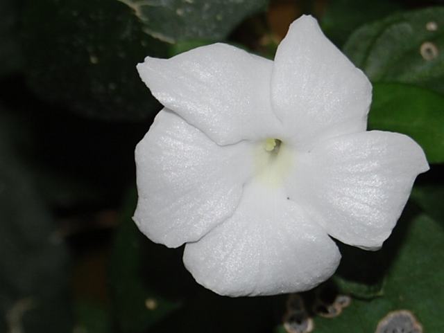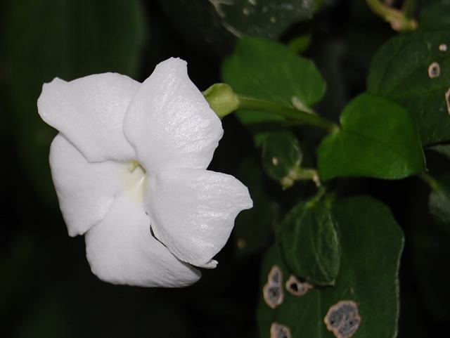 葉の脇に花径5センチくらいの白い花を1輪ずつつける。