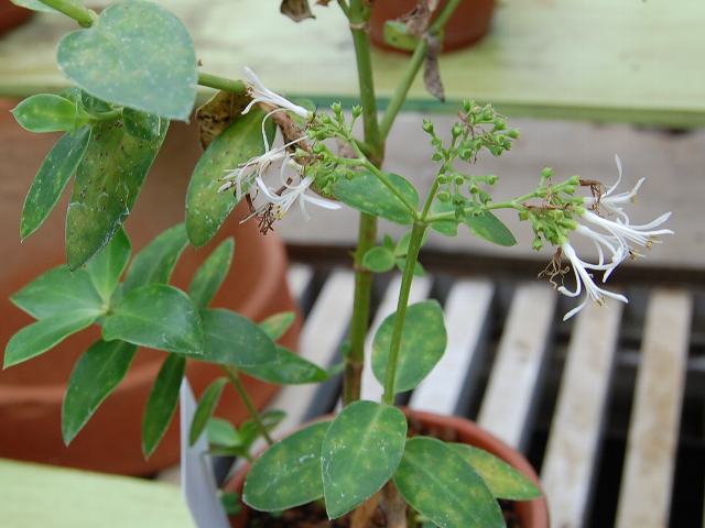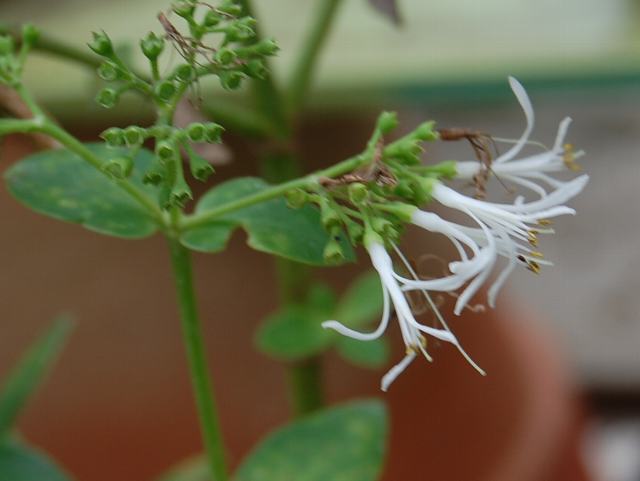 茎先に花径10~12ミリくらいの白い花を数個横向きにつける。