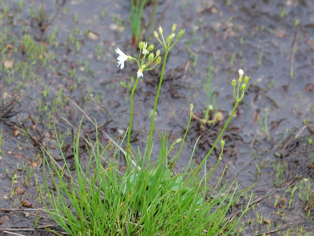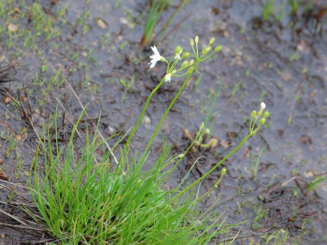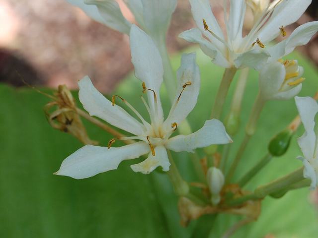 花茎の先に数輪の白い花をつける。