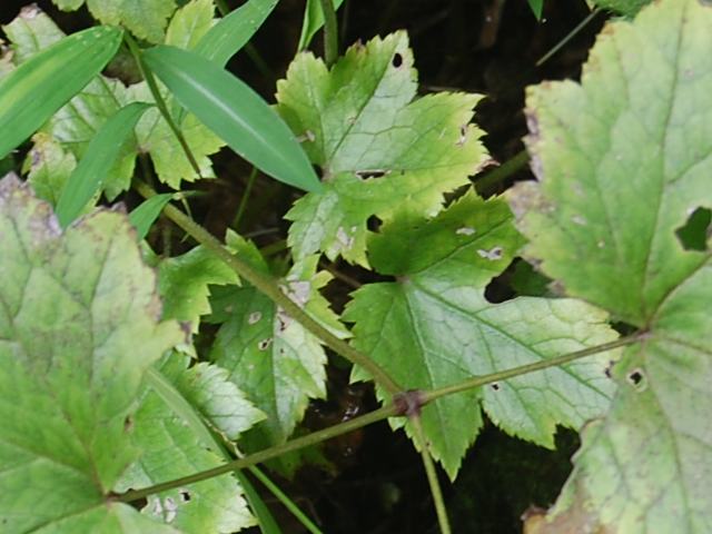 根際から生える葉は3出複葉(1枚の葉が3つの小さな葉に分かれた形)である。