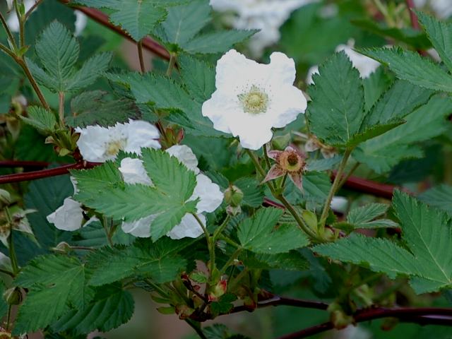 梶苺(カジイチゴ)との違いは、枝に棘があることである。