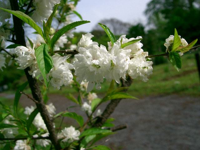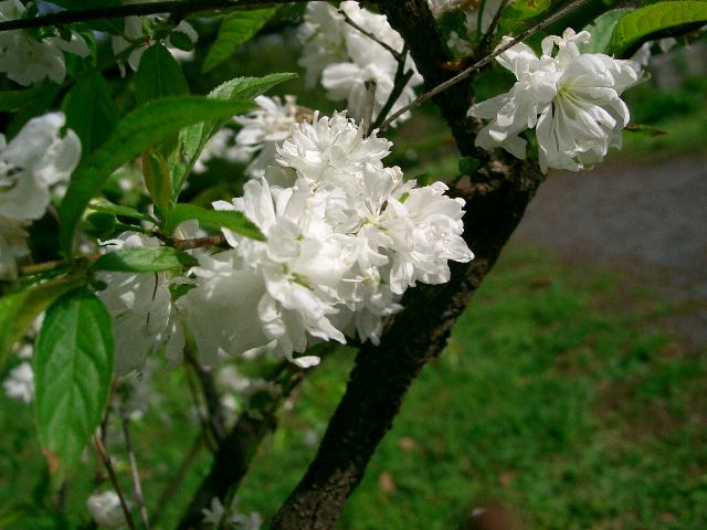 一重咲きの庭梅(ニワウメ:Prunus japonica)の近縁種で、八重咲きである。
