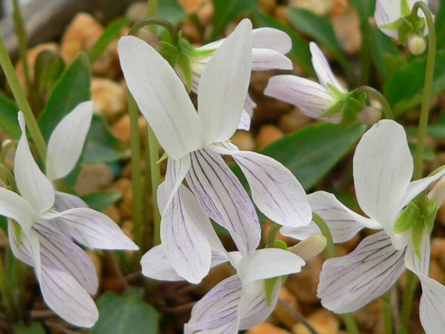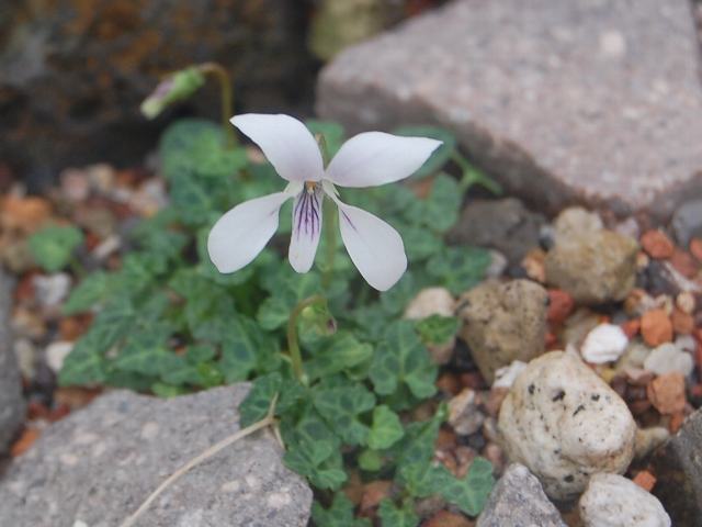 花の色が白いほかは、菫(スミレ)と同様の形状である。