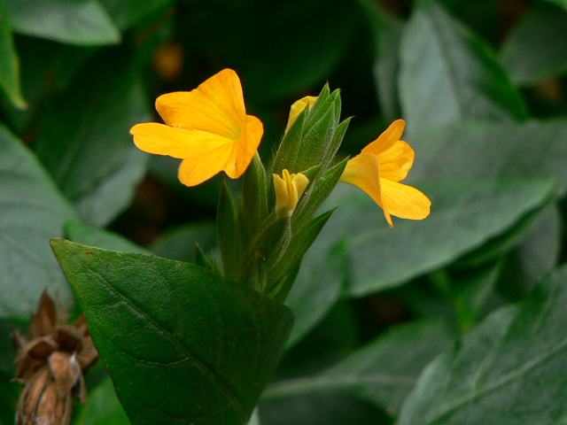 茎先に近い葉の脇から柄を出して、花径3センチから5センチの黄色い花をつける。