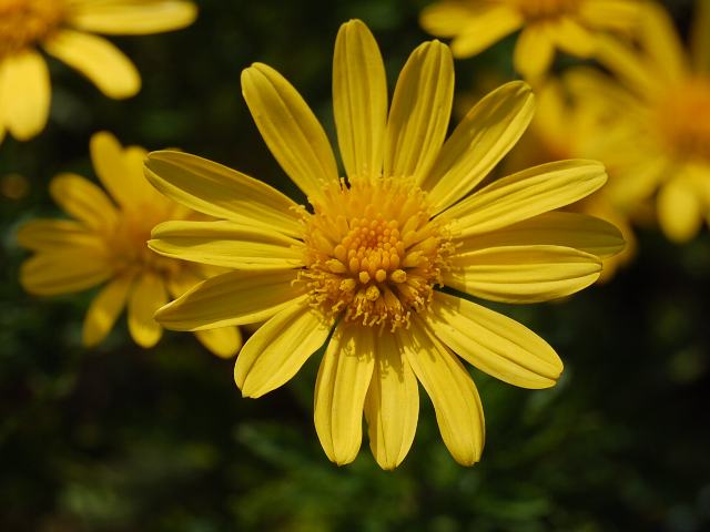 ユリオプスデージーと似ているが、本種のほうが葉の切れ込みが浅い。