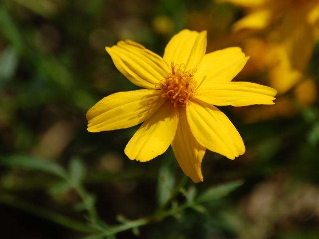 花径3センチくらいの黄色い一重の花(頭花)をたくさんつける。