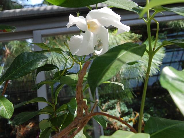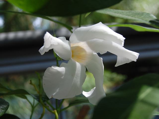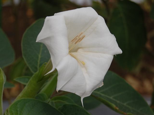 白い漏斗形の花を上向きに咲かせる。