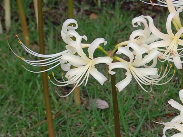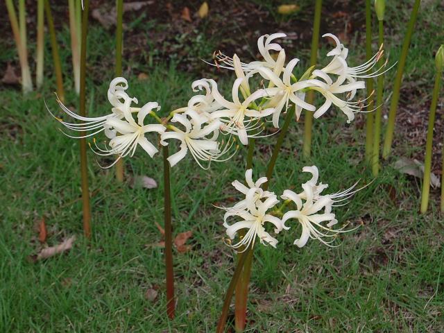 白花曼珠沙華(シロバナマンジュシャゲ)はヒガンバナ科ヒガンバナ属の多年草である。