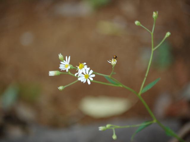 舌状花は白く、筒状花は淡い黄色である。