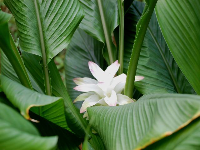 ★葉の陰に鬱金の花はひっそりと