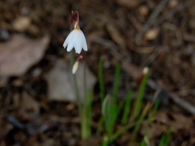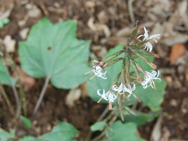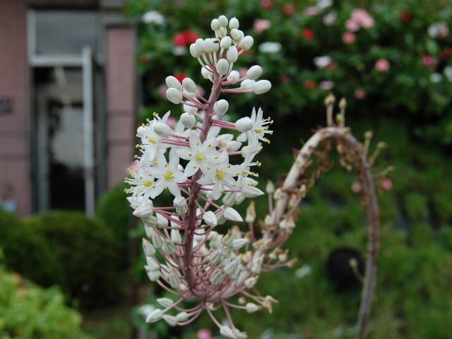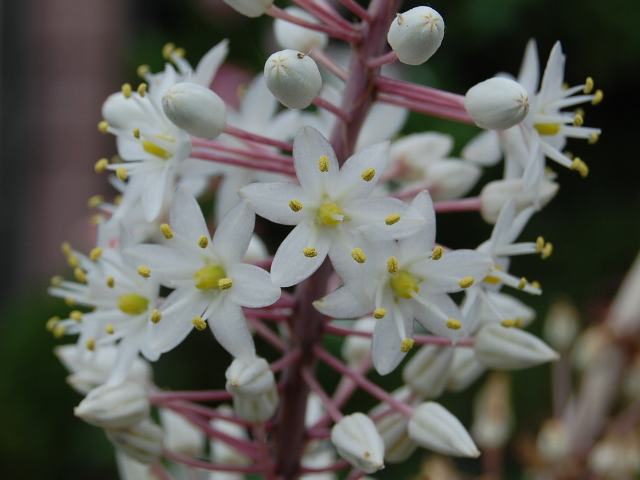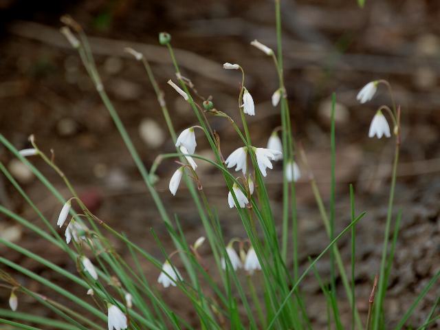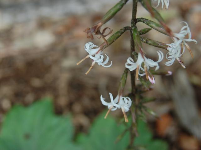茎先から総状花序(柄のある花が花茎に均等につく)を出し、白い筒状の花をつける。