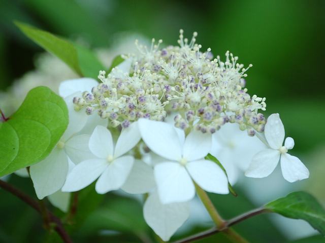 山紫陽花(ヤマアジサイ)に比べて葉が細い。