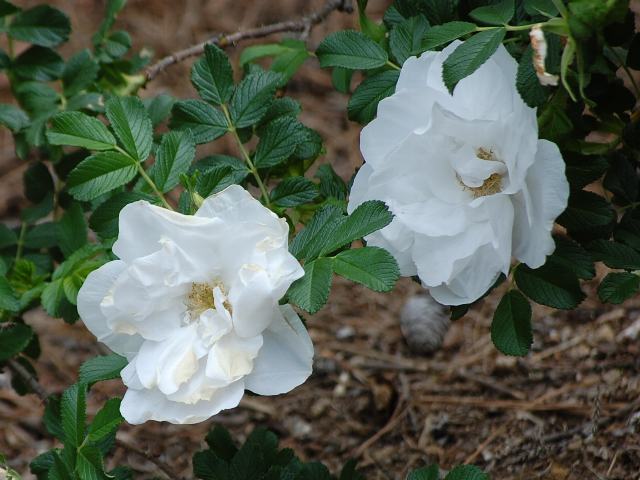基本種の浜梨(ハマナス)は紅色の花をつけるが、稀に白花をつけるものがある。