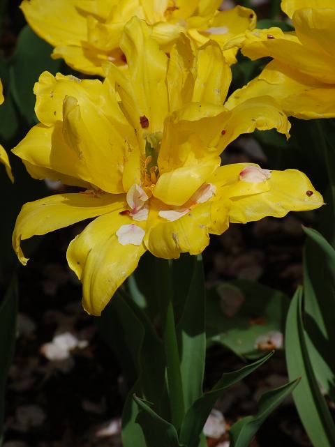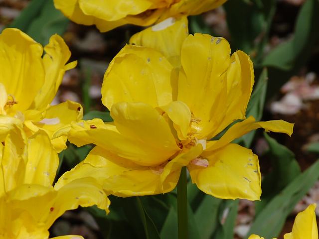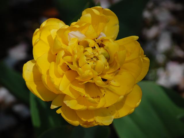 花の色は黄色で、幾重にも重なって豪華に咲く。