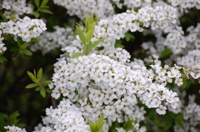 開花は雪柳(ユキヤナギ)よりも少し遅い。花の形はよく似ている。