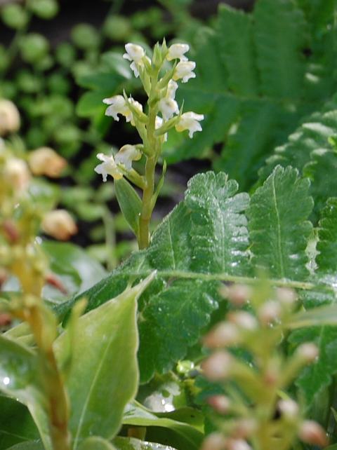 長さが10~15センチある円筒形の花序を出し、淡い黄色の花をつける。