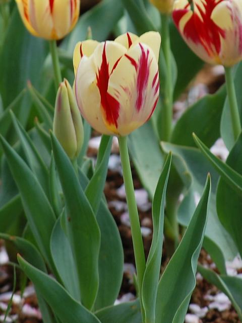 中生咲き(4月中旬から5月上旬)のトライアンフ系(Triumph)に含まれる。