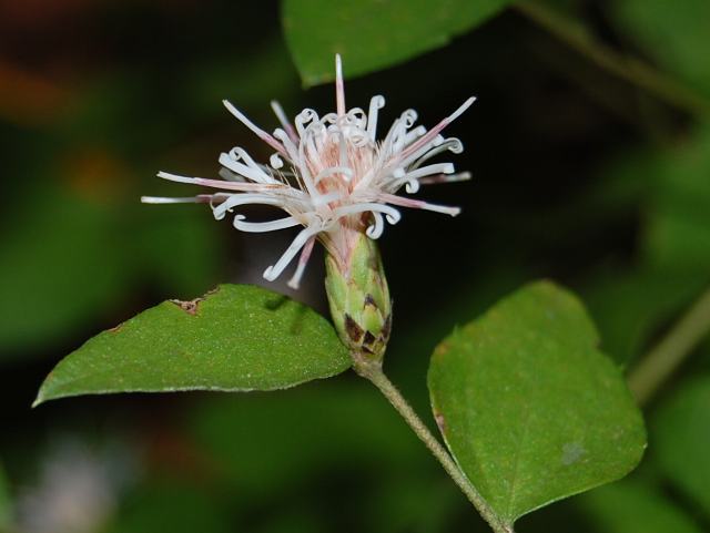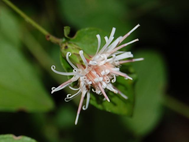 枝先に白ないし淡い紅色の花(頭花)をつける。