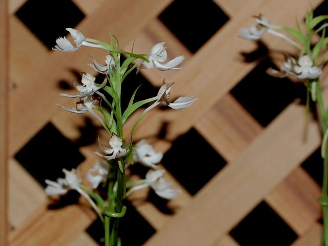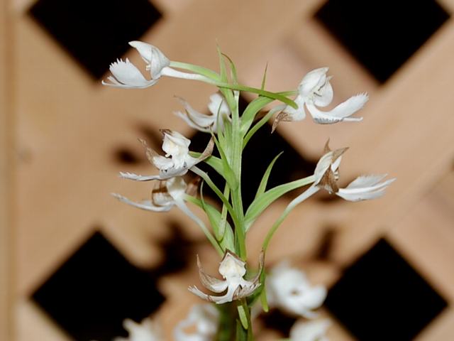 茎先に総状花序(柄のある花が花茎に均等につく)を出し、鷺草(サギソウ)に似た白い花をたくさんつける。