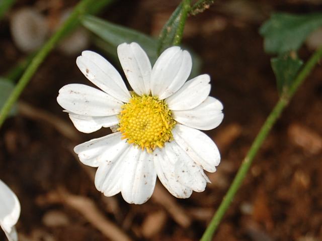白い花びら(舌状花)は8枚から13枚くらいで、間隔は不ぞろいである。