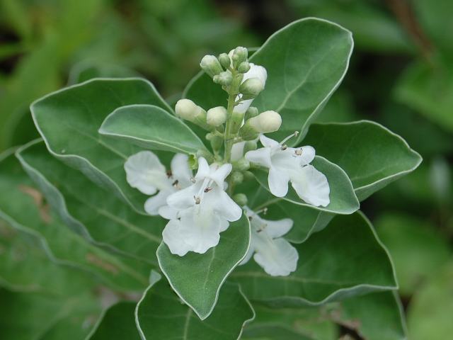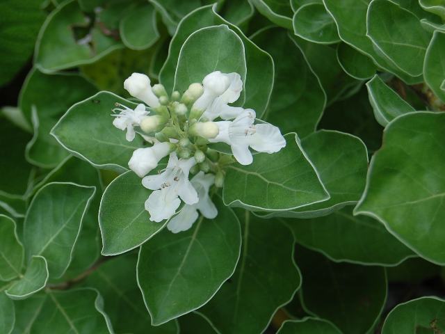 稀に白花のものがあり、白花蔓荊(シロバナハマゴウ)と呼んでいる。