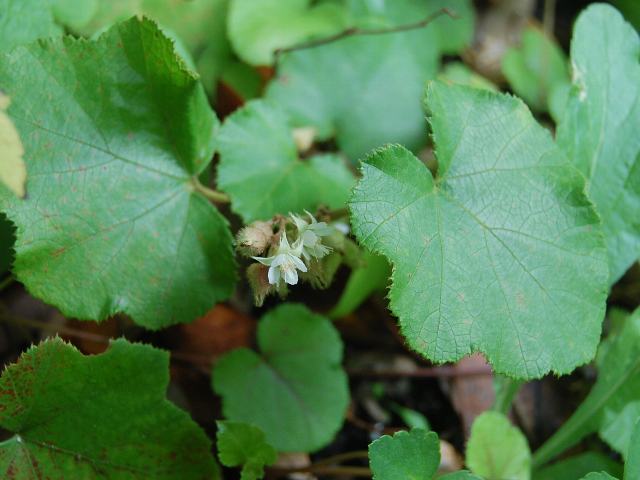 葉の脇から総状花序(柄のある花が花茎に均等につく)を出し、白い小さな花を数個ずつつける。
