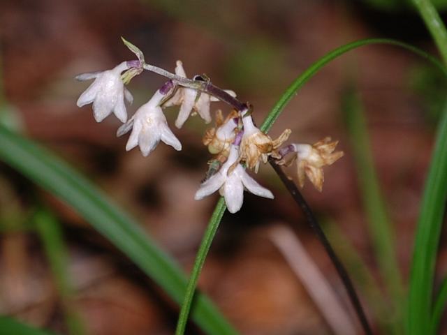花の色は薄紫色ないし白で、横向きないし下向きに小さな花をつける。