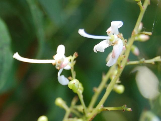 白い花を穂状に垂らす。