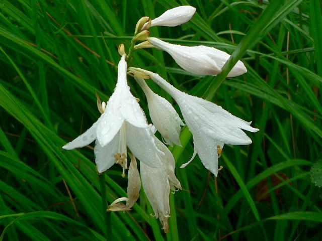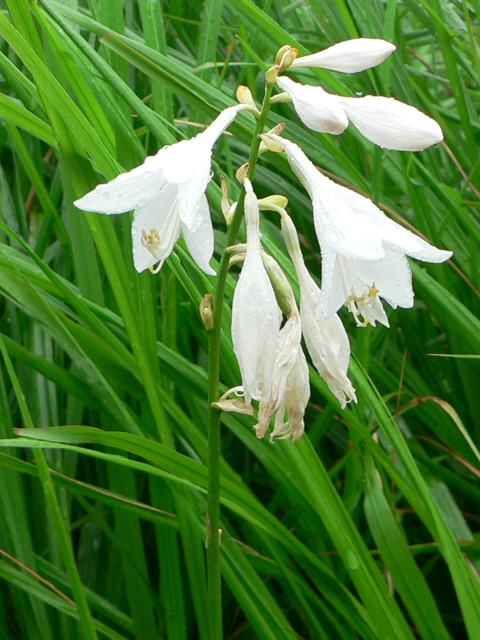 稀に白花のものがあり、白花立擬宝珠(シロバナタチギボウシ)と呼んでいる。