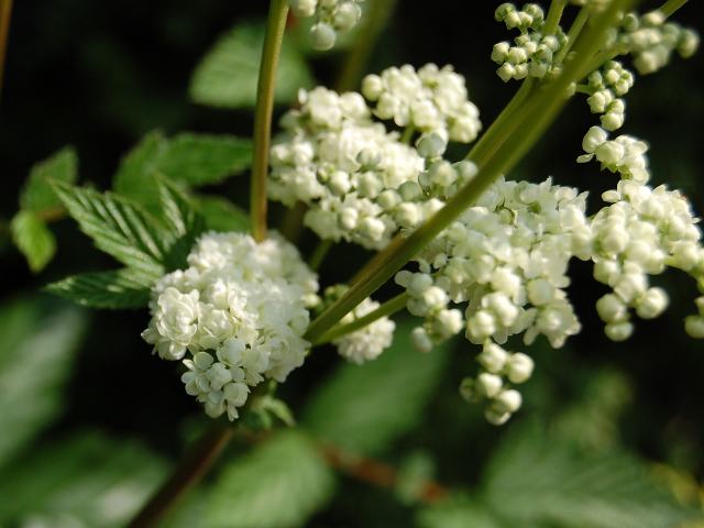 白い小さな花が球状に咲く。