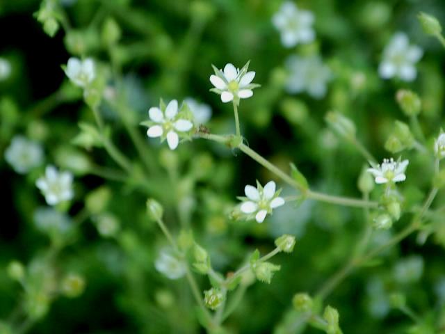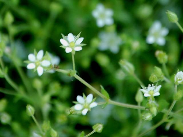 茎先に花径5ミリくらいの白い5弁花をつける。
