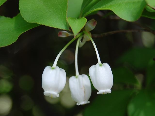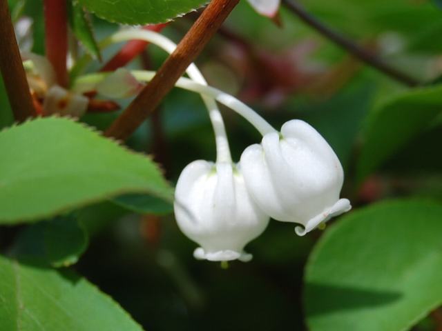枝先に白い壷形の花を2~4輪くらい下垂して咲かせる。