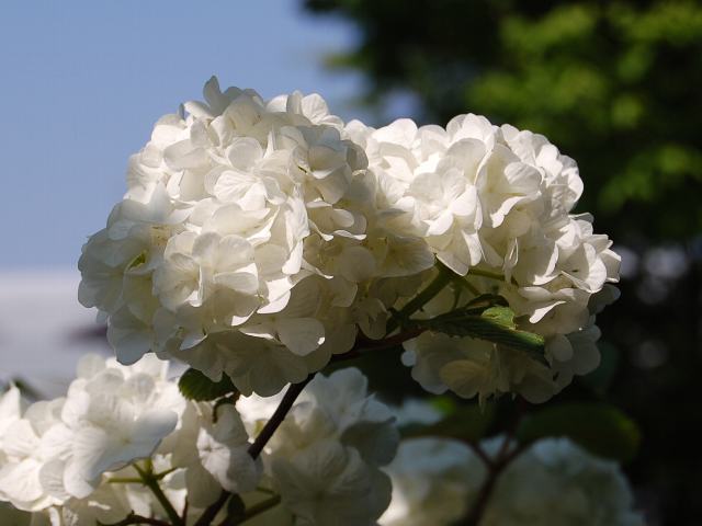 藪手毬(ヤブデマリ)の花がすべて装飾花になった園芸品種と言われている。